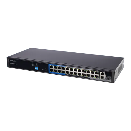 Данный коммутатор представляет собой 24-портовое устройство с поддержкой PoE (Power over Ethernet) и двумя uplink-портами, а также одним SFP-портом.