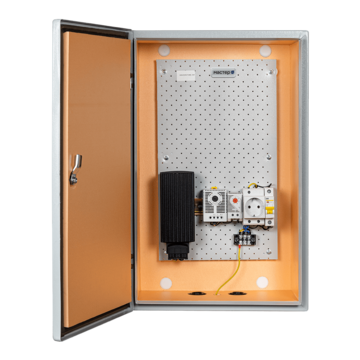 Навесной климатический шкаф Mastermann-3УТ-Г версии 2.0, обладающий степенью защиты IP 66, предназначен для обеспечения защиты оборудования от воздействия повышенной влажности, вызванной осадками, паром или близостью к водоемам. Данная модель оснащена механическим гигростатом, регулирующим уровень влажности внутри шкафа.